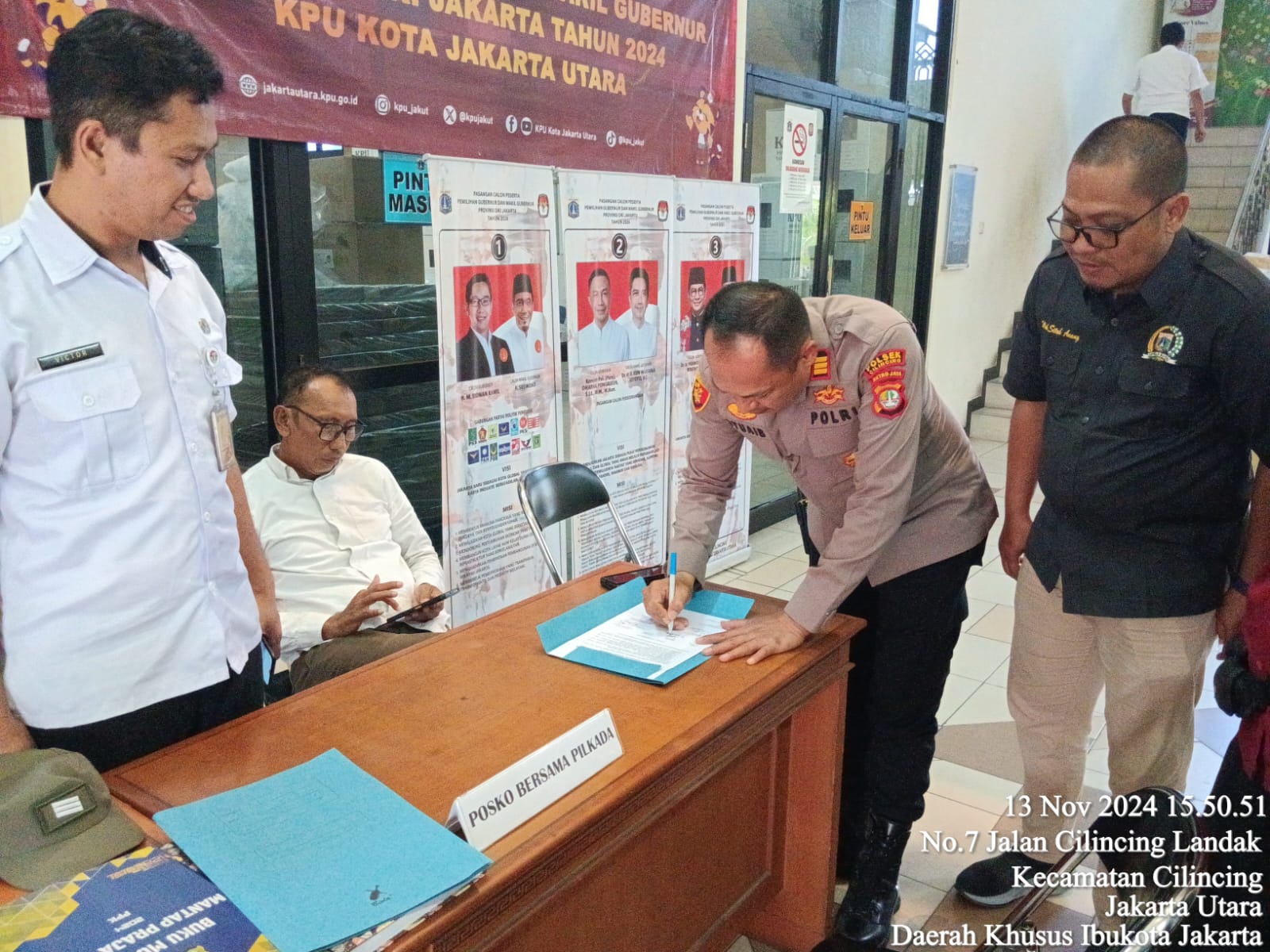 Jakarta, – Penyelenggaraan pemilihan Gubernur dan Wakil Gubernur Provinsi DKI Jakarta yang dihadiri Wakapolsek AKP Syuieb Bahrun,SH., bersama Setakeholder terkait diharapkan netral dalam pemilihan Pilkada 2024 dan diharapkan ASN, TNI- Polri tidak memihak kepada pencalonan calon gubernur dan wakil Gubernur. Deklarasi ini sebagai bentuk komitmen TNI- Polri dan ASN untuk memantau berlangsungnya pemilihan.