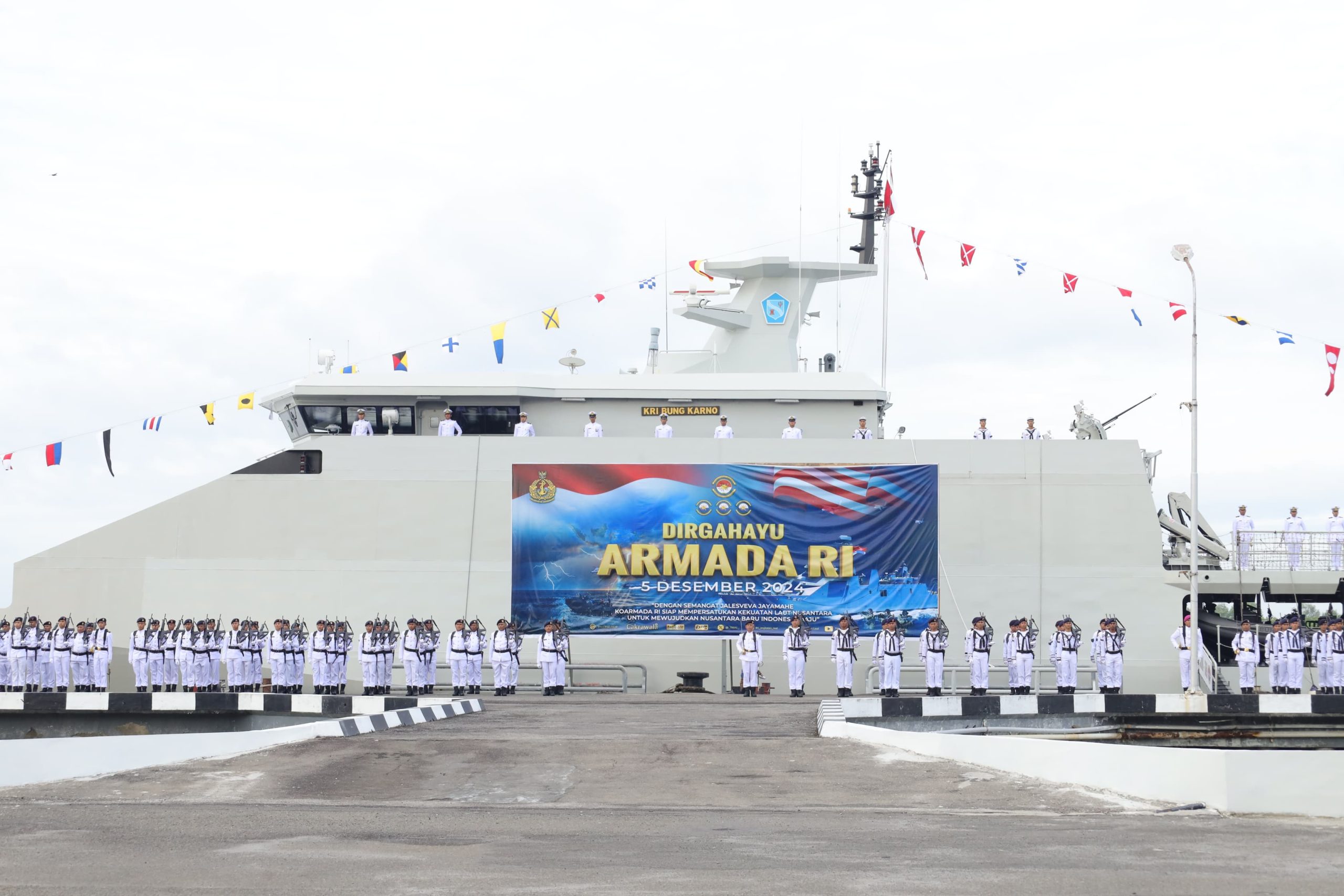 TNI AL, Belawan,- Seluruh Prajurit dan ASN Pangkalan Utama TNI AL I (Lantamal I) Belawan melaksanakan Upacara dalam rangka memperingati Hari Armada RI Tahun 2024 di Lapangan Apel Mako Lantamal I. Bertindak sebagai Inspektur Upacara (Irup) yakni Pgs. Wadan Lantamal I Kolonel Laut (P) Hendrik Kurniawan, M.Tr. Hanla., M.M., Kamis (5/12/2024).
