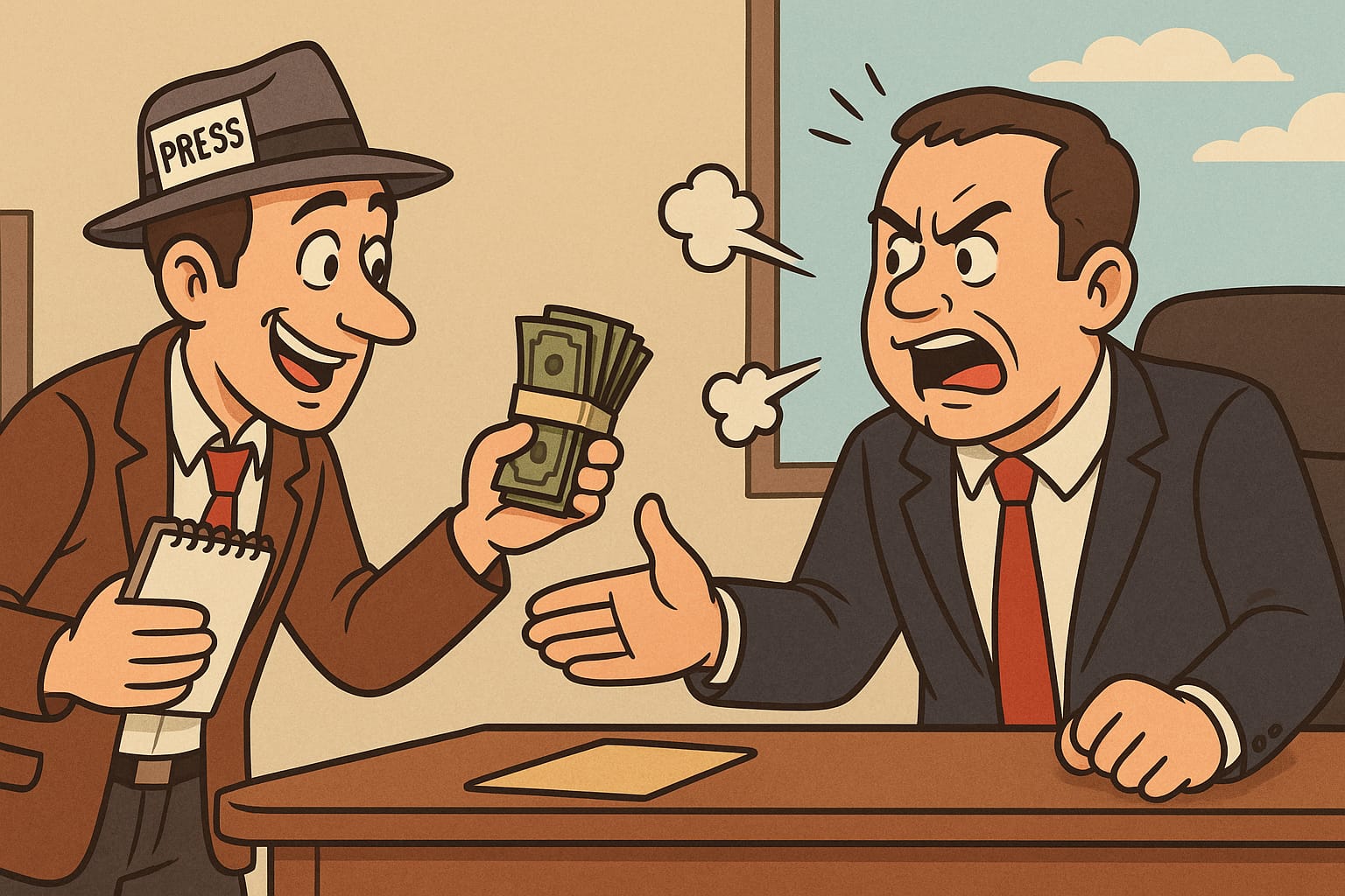 ” Beberapa kali saya lihat langsung, ada yang datang dari media, tapi bukan untuk konfirmasi berita. Malah ujung-ujungnya minta uang bensin,” katanya.